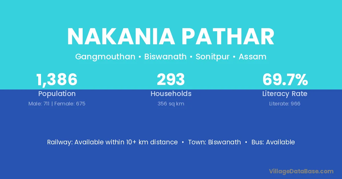 Biswanath is the nearest town to Nakania Pathar village for major economic activities