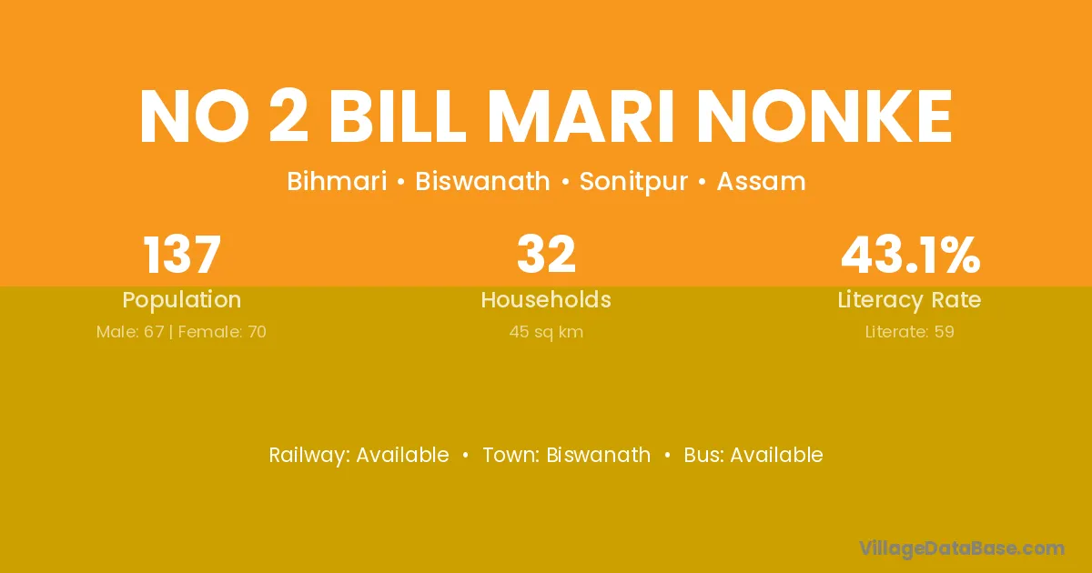 No 2 Bill Mari Nonke village has a total population of 137 people, of which 67 are males and 70 are females.