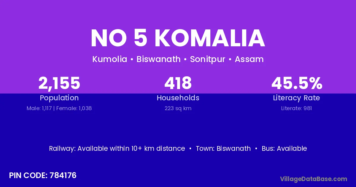 Biswanath is the nearest town to No 5 Komalia village for major economic activities