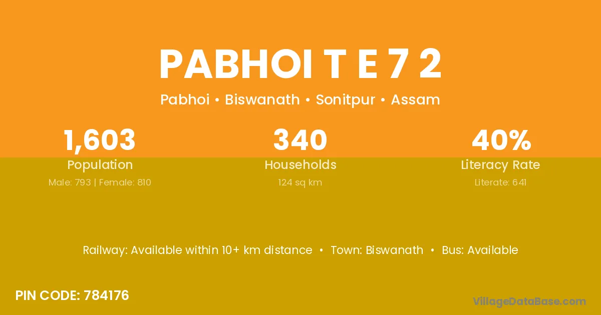 Biswanath is the nearest town to Pabhoi T E 7 2 village for major economic activities