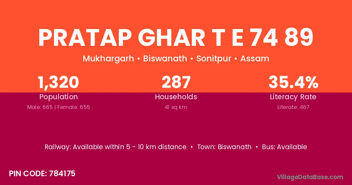 Pratap Ghar T E 74 89 village has a total population of 1,320 people, of which 665 are males and 655 are females.