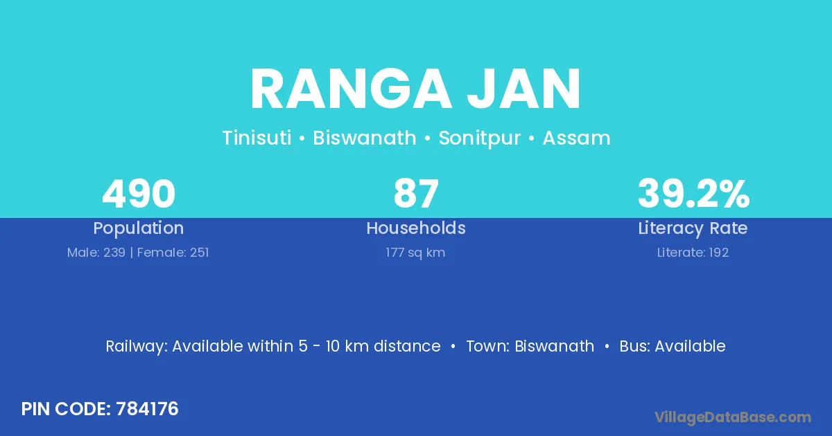 According to Census 2011 information, the village code of Ranga Jan village is 784176.