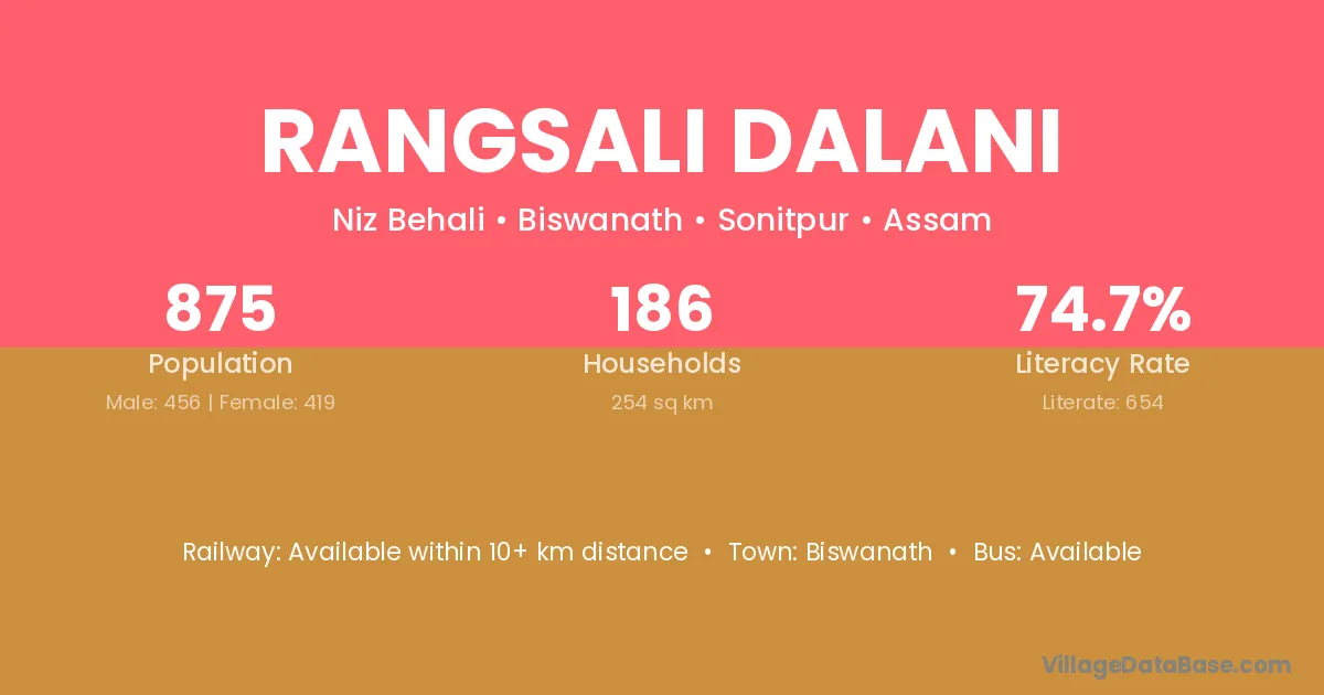 Rangsali Dalani village is located in the Biswanath Subdivision of the Sonitpur district in Assam .
