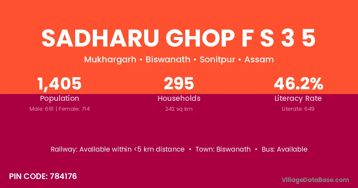 Biswanath is the nearest town to Sadharu Ghop F S 3 5 village for major economic activities