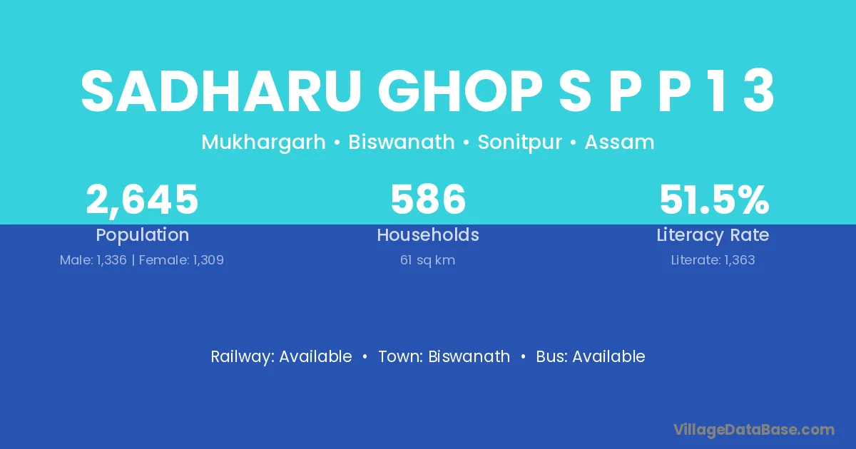 Sadharu Ghop S P P 1 3 village has a total population of 2,645 people, of which 1,336 are males and 1,309 are females.