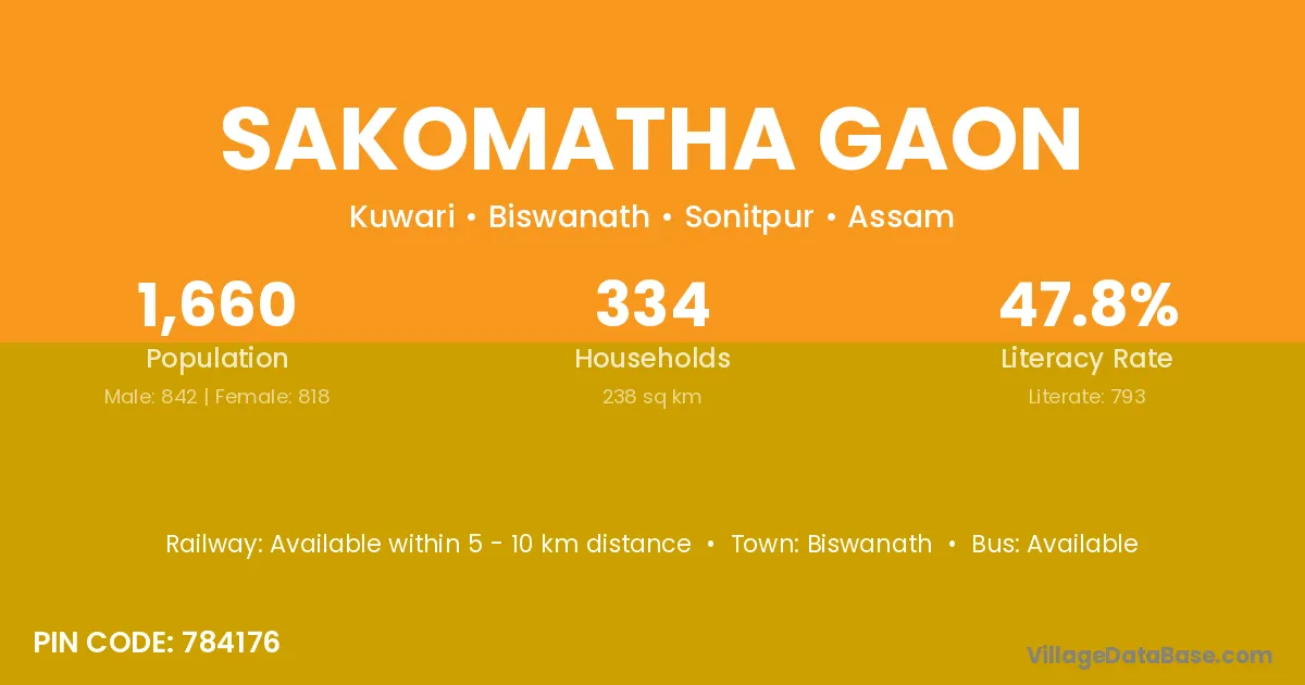 Biswanath is the nearest town to Sakomatha Gaon village for major economic activities