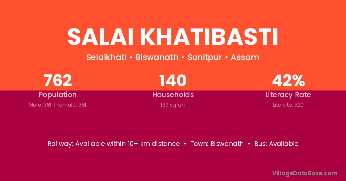 Biswanath is the nearest town to Salai Khatibasti village for major economic activities