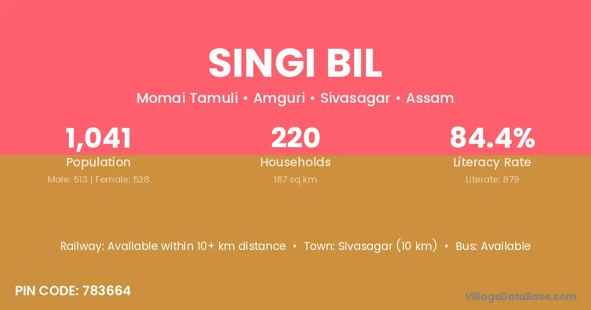Singi Bil village has a total population of 485 people, of which 237 are males and 248 are females.