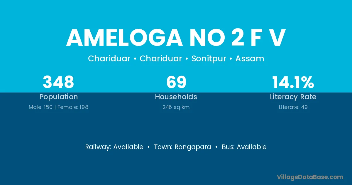 Ameloga No 2 F V village has a total population of 348 people, of which 150 are males and 198 are females.