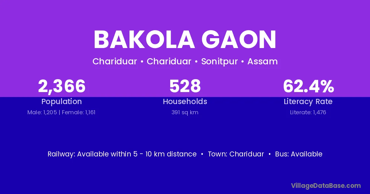 Chariduar is the nearest town to Bakola Gaon village for major economic activities