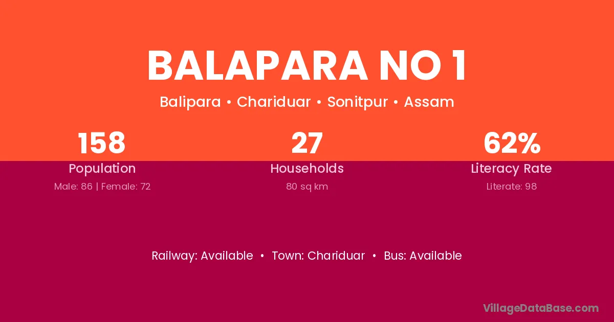 Balapara No 1 village has a total population of 158 people, of which 86 are males and 72 are females.