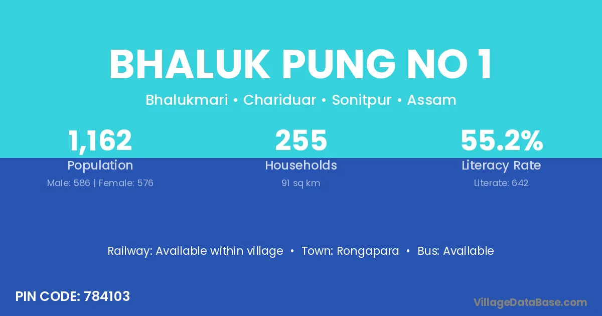 Bhaluk Pung No 1 village has a total population of 1,162 people, of which 586 are males and 576 are females.