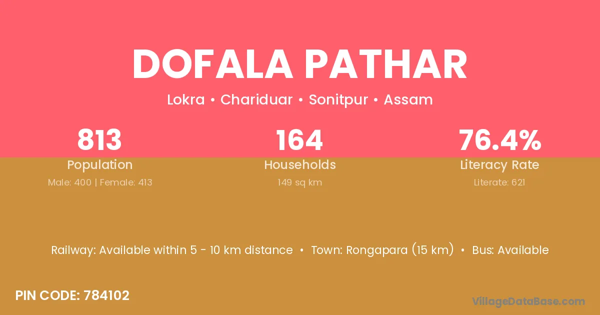 Dofala Pathar village has a total population of 813 people, of which 400 are males and 413 are females.