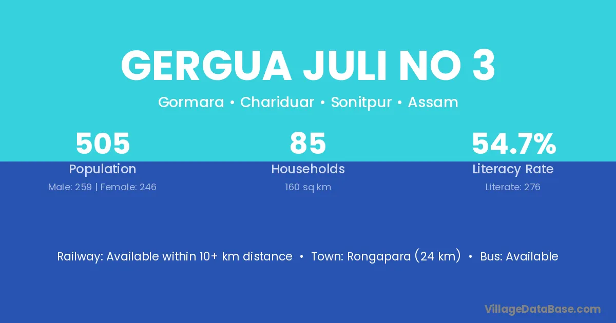 Gergua Juli No 3 village has a total population of 505 people, of which 259 are males and 246 are females.