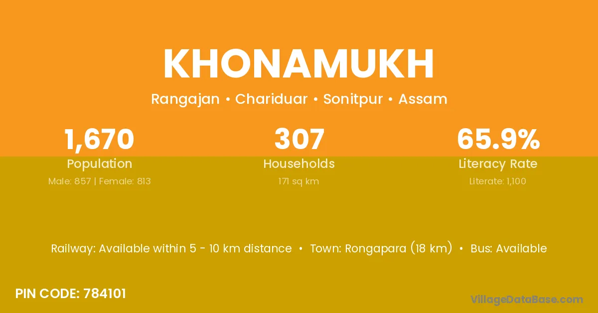 Khonamukh village has a total population of 1,670 people, of which 857 are males and 813 are females.