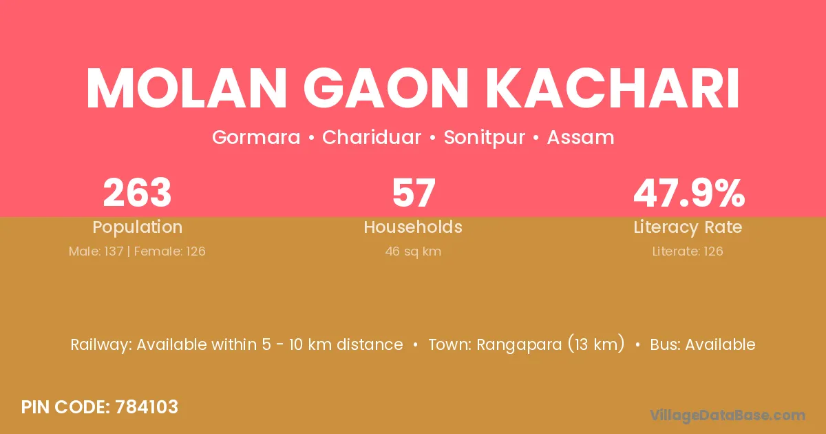 Molan Gaon Kachari village has a total population of 263 people, of which 137 are males and 126 are females.