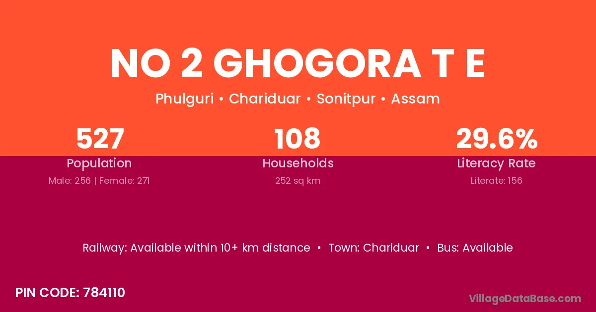 No 2 Ghogora T E village has a total population of 527 people, of which 256 are males and 271 are females.