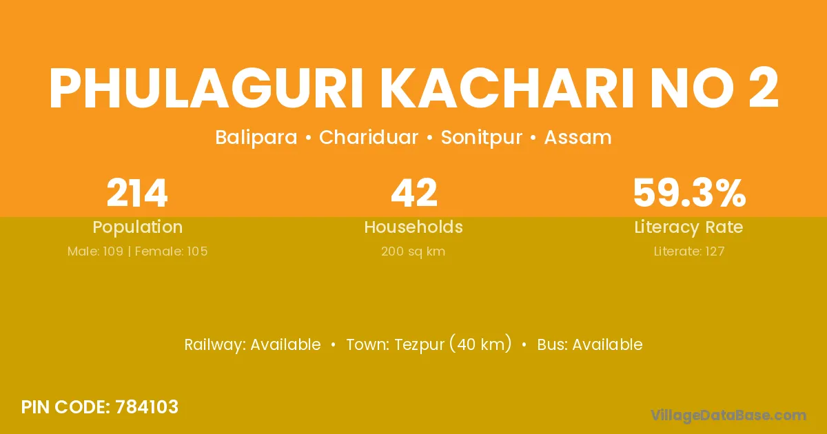 Phulaguri Kachari No 2 village has a total population of 214 people, of which 109 are males and 105 are females.