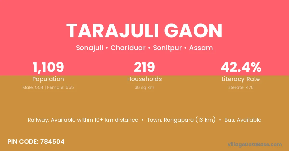 Tarajuli Gaon village has a total population of 1,109 people, of which 554 are males and 555 are females.