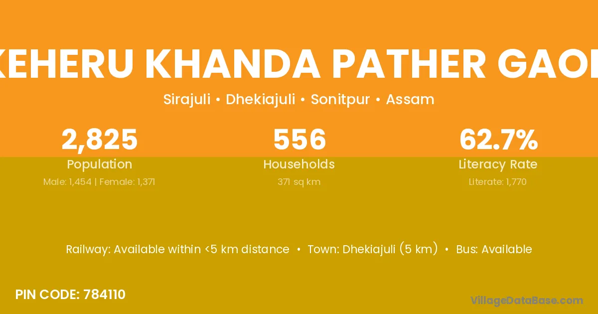 Dhekiajuli (5 km) is the nearest town to Keheru Khanda Pather Gaon village for major economic activities and is located approximately 5 km away.