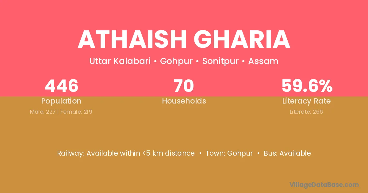 Athaish Gharia village has a total population of 446 people, of which 227 are males and 219 are females.