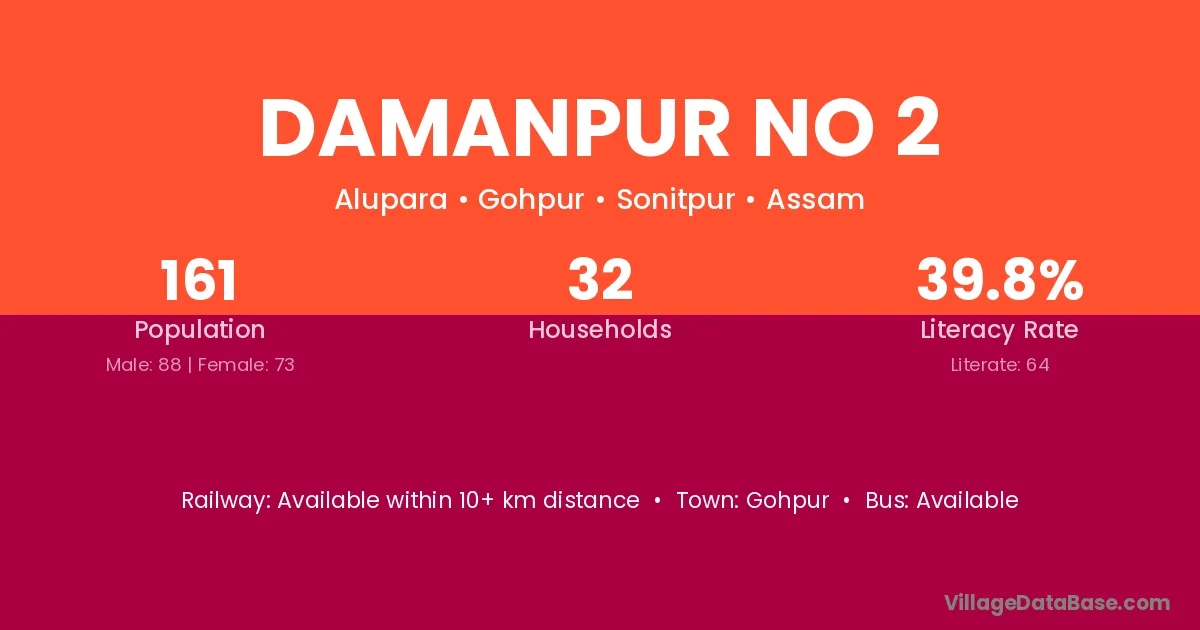 Gohpur is the nearest town to Damanpur No 2 village for major economic activities