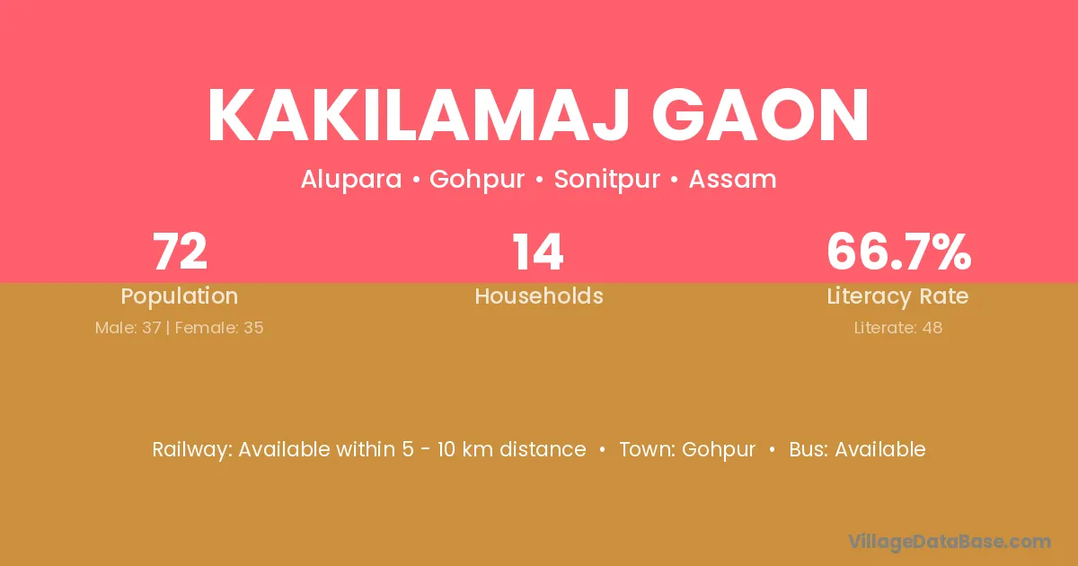 Kakilamaj Gaon village has a total population of 72 people, of which 37 are males and 35 are females.