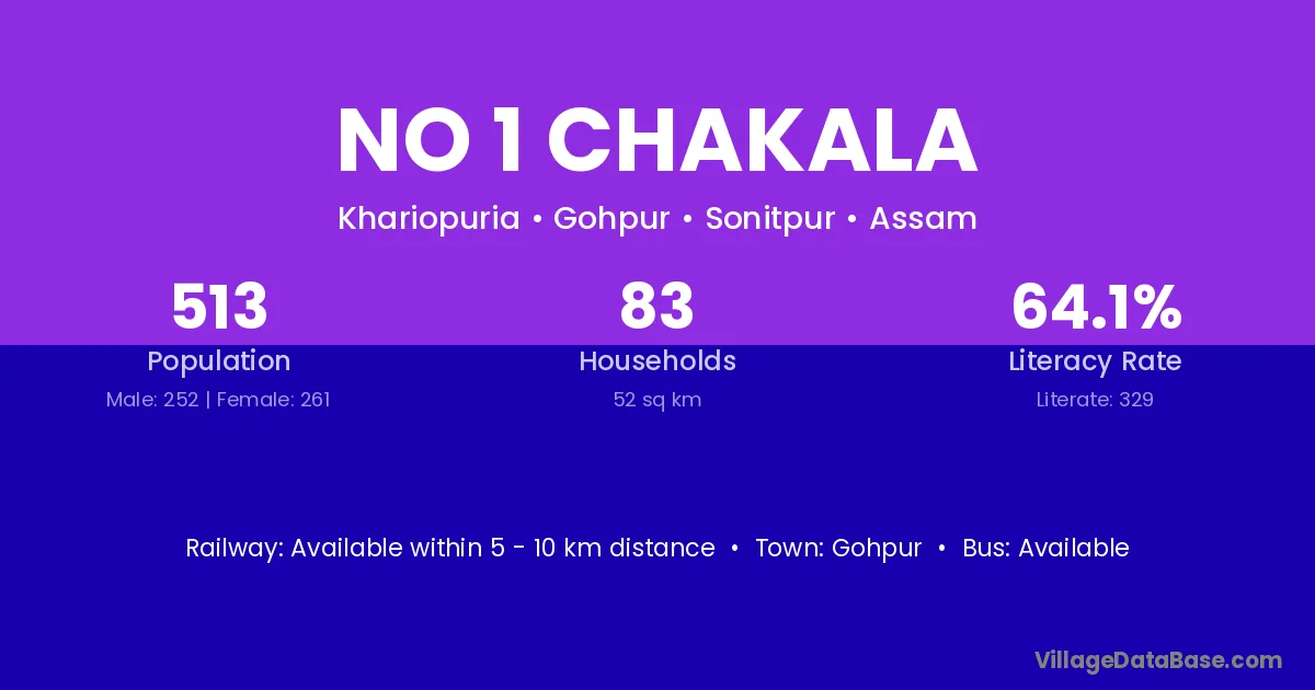 No 1 Chakala village has a total population of 513 people, of which 252 are males and 261 are females.