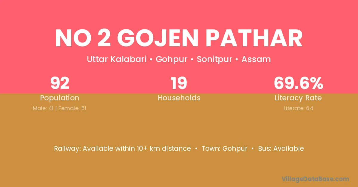 No 2 Gojen Pathar village has a total population of 92 people, of which 41 are males and 51 are females.