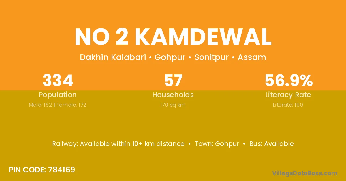 No 2 Kamdewal village has a total population of 334 people, of which 162 are males and 172 are females.