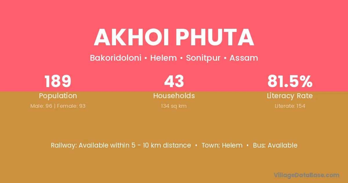 Akhoi Phuta village has a total population of 189 people, of which 96 are males and 93 are females.