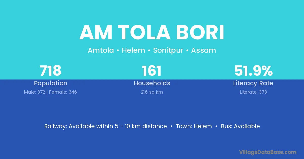 Am Tola Bori village has a total population of 718 people, of which 372 are males and 346 are females.