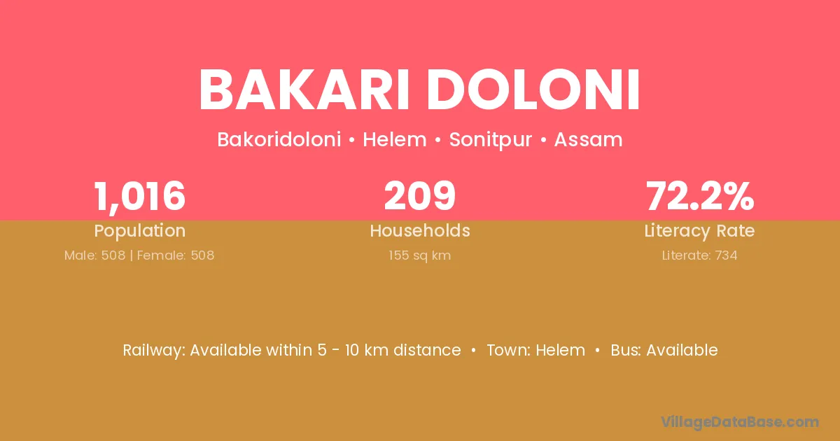 Bakari Doloni village has a total population of 1,016 people, of which 508 are males and 508 are females.