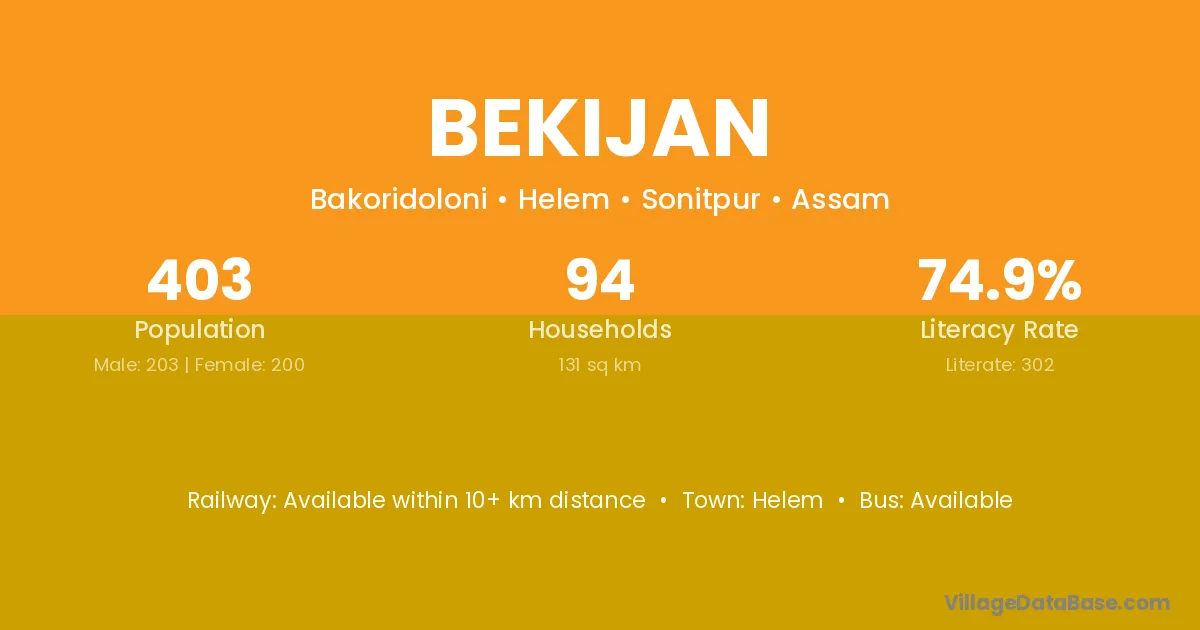 Bekijan village is located in the Helem Subdivision of the Sonitpur district in Assam .