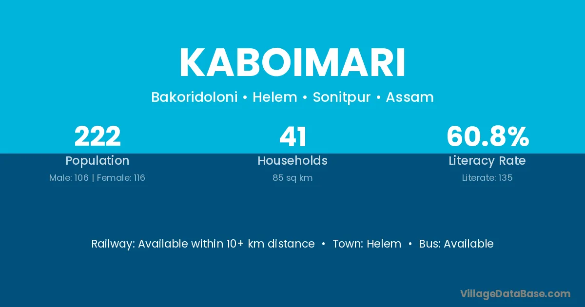 Kaboimari village has a total population of 222 people, of which 106 are males and 116 are females.
