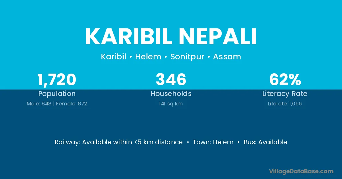 Karibil Nepali village has a total population of 1,720 people, of which 848 are males and 872 are females.