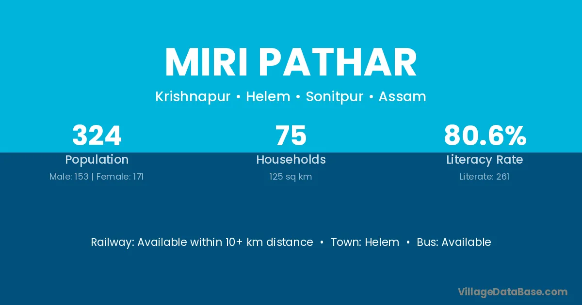Miri Pathar village has a total population of 324 people, of which 153 are males and 171 are females.