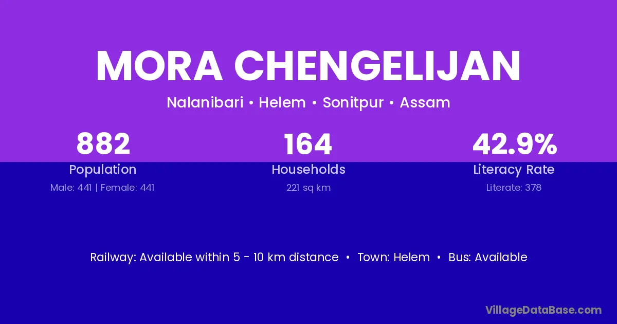 Mora Chengelijan village has a total population of 882 people, of which 441 are males and 441 are females.