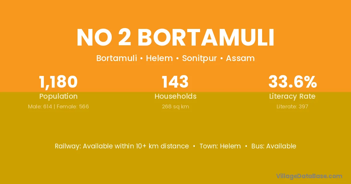 No 2 Bortamuli village has a total population of 1,180 people, of which 614 are males and 566 are females.
