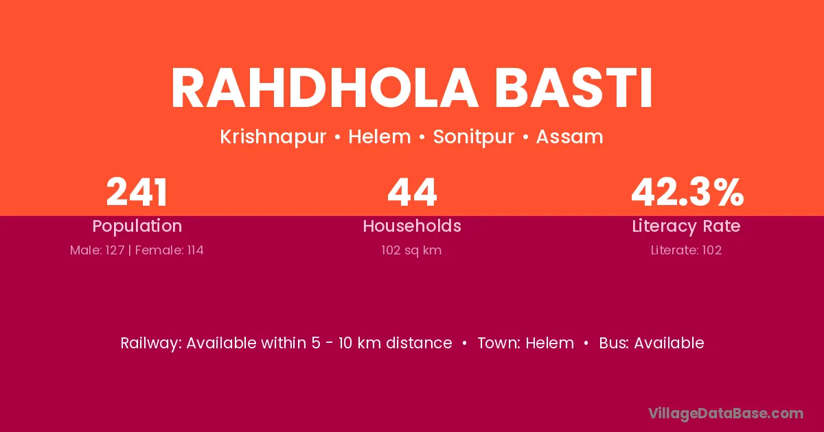 Rahdhola Basti village has a total population of 241 people, of which 127 are males and 114 are females.