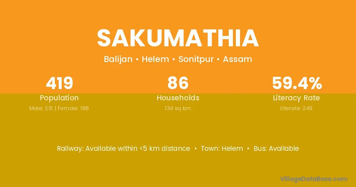 Sakumathia village has a total population of 419 people, of which 231 are males and 188 are females.