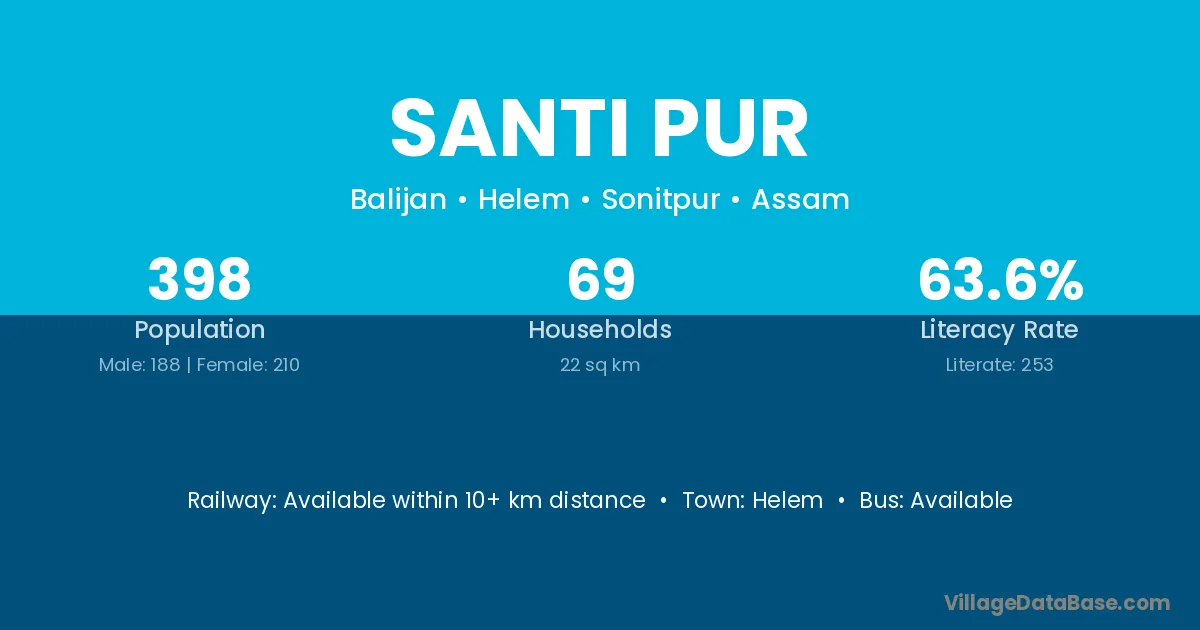 Santi Pur village has a total population of 398 people, of which 188 are males and 210 are females.