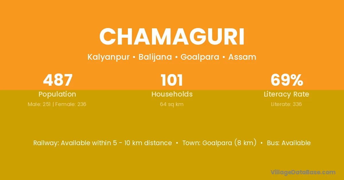 Chamaguri village has a total population of 636 people, of which 328 are males and 308 are females.