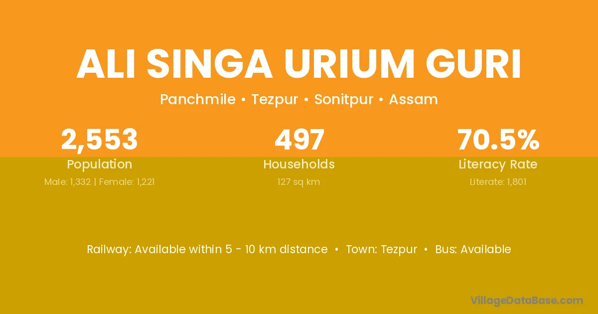 Ali Singa Urium Guri village has a total population of 2,553 people, of which 1,332 are males and 1,221 are females.
