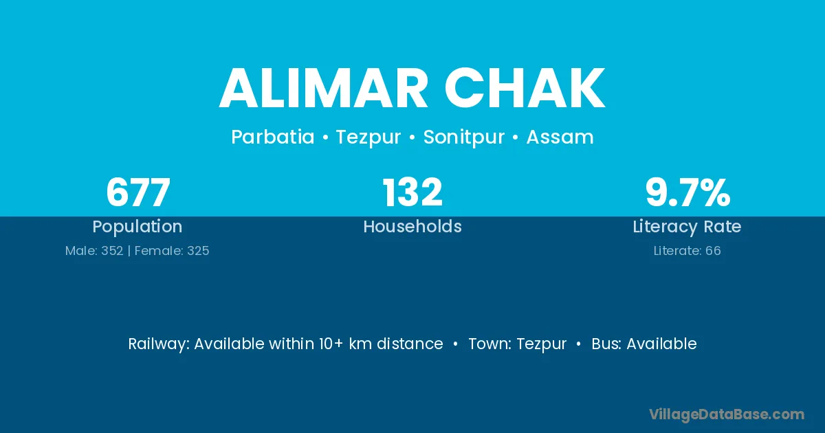 Tezpur is the nearest town to Alimar Chak village for major economic activities