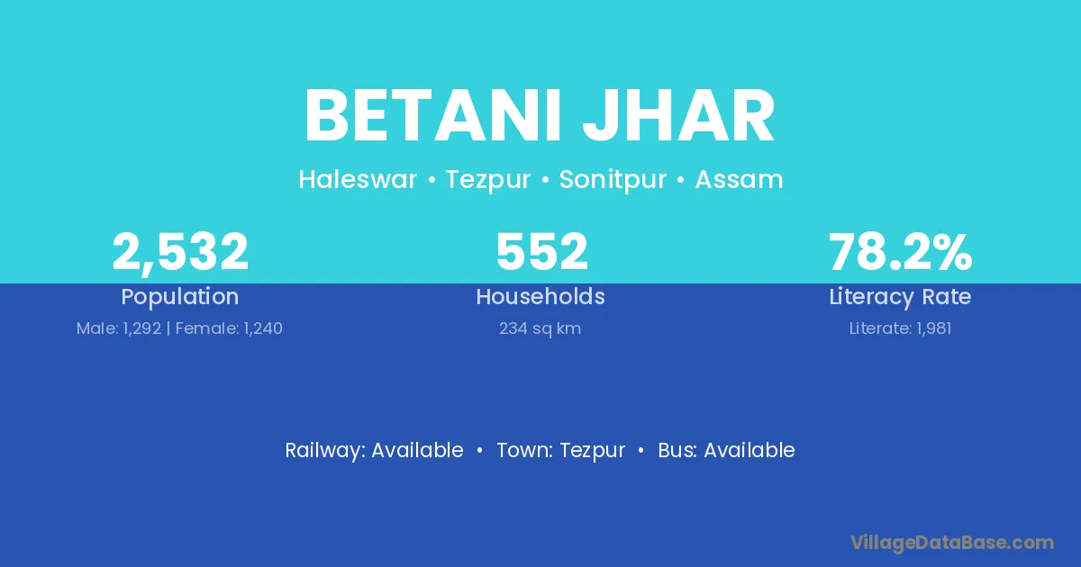 Tezpur is the nearest town to Betani Jhar village for major economic activities