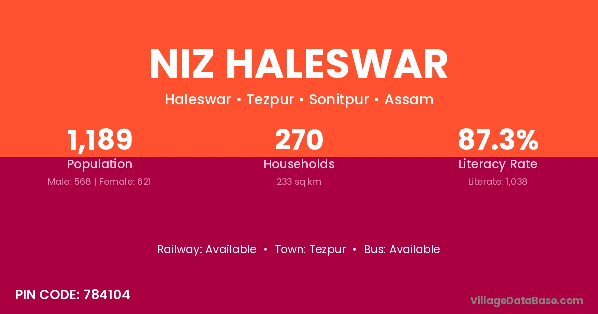 According to Census 2011 information, the village code of Niz Haleswar village is 784104.