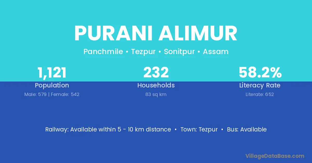 Tezpur is the nearest town to Purani Alimur village for major economic activities