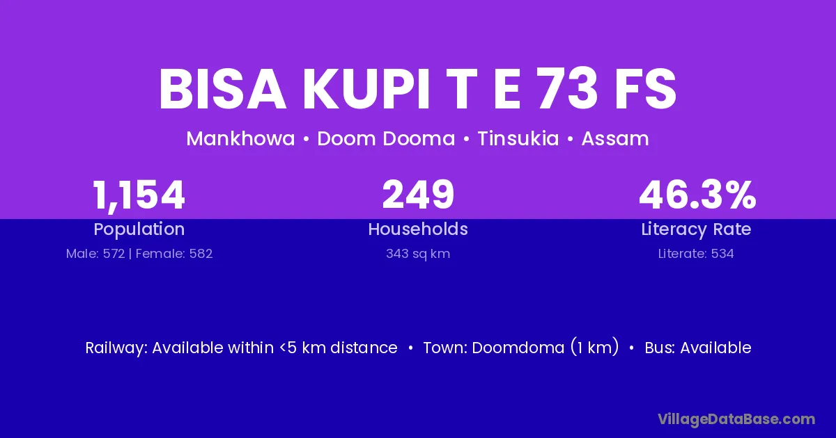Bisa Kupi T E 73 Fs village is located in the Doom Dooma Subdivision of the Tinsukia district in Assam .