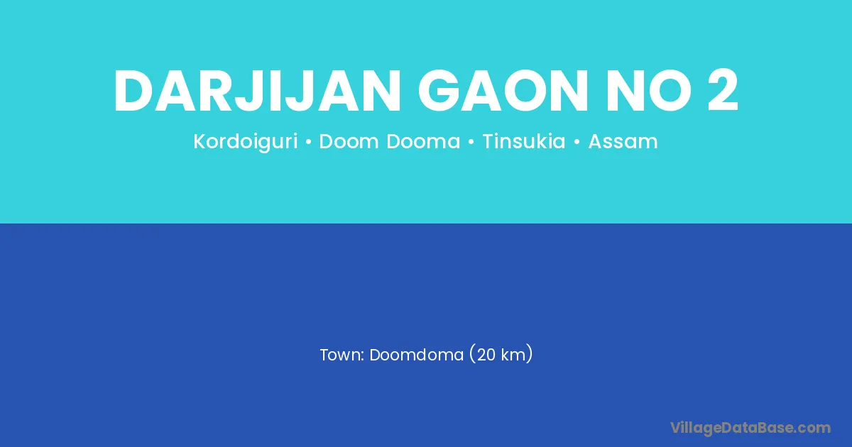 Doomdoma (20 km) is the nearest town to Darjijan Gaon No 2 village for major economic activities and is located approximately 20 km away.
